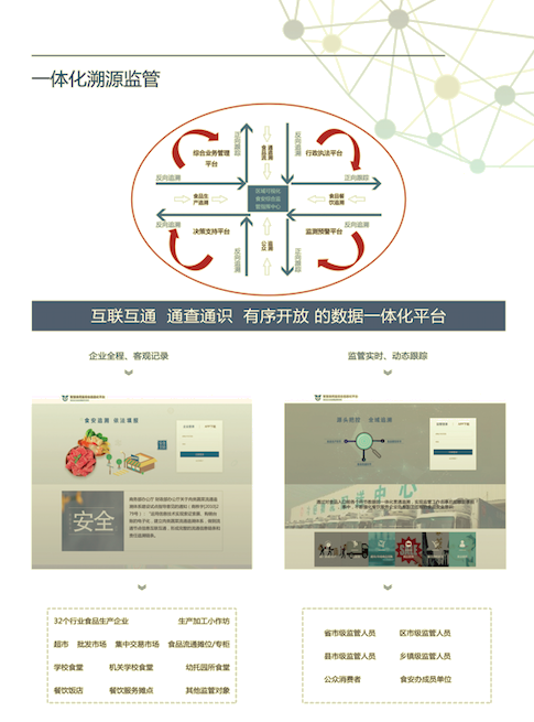 北京天航經(jīng)過(guò)?余年的沉淀?高標(biāo)準(zhǔn)面向食品安全監(jiān)督檢查人員打造了信息化溯源監(jiān)管智慧應(yīng)用平臺(tái)?在滿足監(jiān)管業(yè)務(wù)與食品生產(chǎn)經(jīng)營(yíng)全行業(yè)企業(yè)協(xié)同應(yīng)用的同時(shí)?實(shí)現(xiàn)了“互聯(lián)網(wǎng)+智慧監(jiān)管+智慧追溯+智慧服務(wù)”和“一個(gè)平臺(tái)?完成多項(xiàng)工作”的變革化目標(biāo)。并遵循“監(jiān)管追蹤、一一對(duì)應(yīng)、按圖索驥”的精準(zhǔn)溯源監(jiān)管原則?以食品生產(chǎn)企業(yè)追溯系統(tǒng)及監(jiān)管系統(tǒng)為基礎(chǔ)?擴(kuò)展延伸至食品流通和餐飲服務(wù)企業(yè)追溯系統(tǒng)?整合并貫通數(shù)據(jù)?以生產(chǎn)(含小作坊)、流通(含攤點(diǎn)/專(zhuān)柜)、餐飲(含攤點(diǎn)/專(zhuān)柜)、種養(yǎng)殖等各環(huán)節(jié)的質(zhì)量安全追溯鏈條?為監(jiān)管部門(mén)、食品鏈各環(huán)節(jié)從業(yè)者、消費(fèi)者、第三方食安領(lǐng)域信息化系統(tǒng)提供標(biāo)準(zhǔn)化的接口和數(shù)據(jù)服務(wù)。天航智慧食安綜合信息化平臺(tái)構(gòu)建于國(guó)內(nèi)領(lǐng)先的安全云服務(wù)平臺(tái)?通過(guò)共享區(qū)塊鏈技術(shù)的應(yīng)用?將可視化綜合指揮中心、面向三個(gè)行業(yè)的智慧溯源監(jiān)管系統(tǒng)、以及監(jiān)管應(yīng)用擴(kuò)展中心等相連,為域內(nèi)食品安全大數(shù)據(jù)分析應(yīng)用夯實(shí)基礎(chǔ),并以此為基礎(chǔ),強(qiáng)化事前監(jiān)控、事中跟蹤、事后可查的數(shù)字化環(huán)境?系統(tǒng)打造“過(guò)程可監(jiān)管、產(chǎn)品可追溯、風(fēng)險(xiǎn)可預(yù)警、責(zé)任可追究、終端可查詢(xún)”的食安新生態(tài)。構(gòu)建符合國(guó)家食品安全示范城市標(biāo)準(zhǔn)的信息化應(yīng)用平臺(tái)。