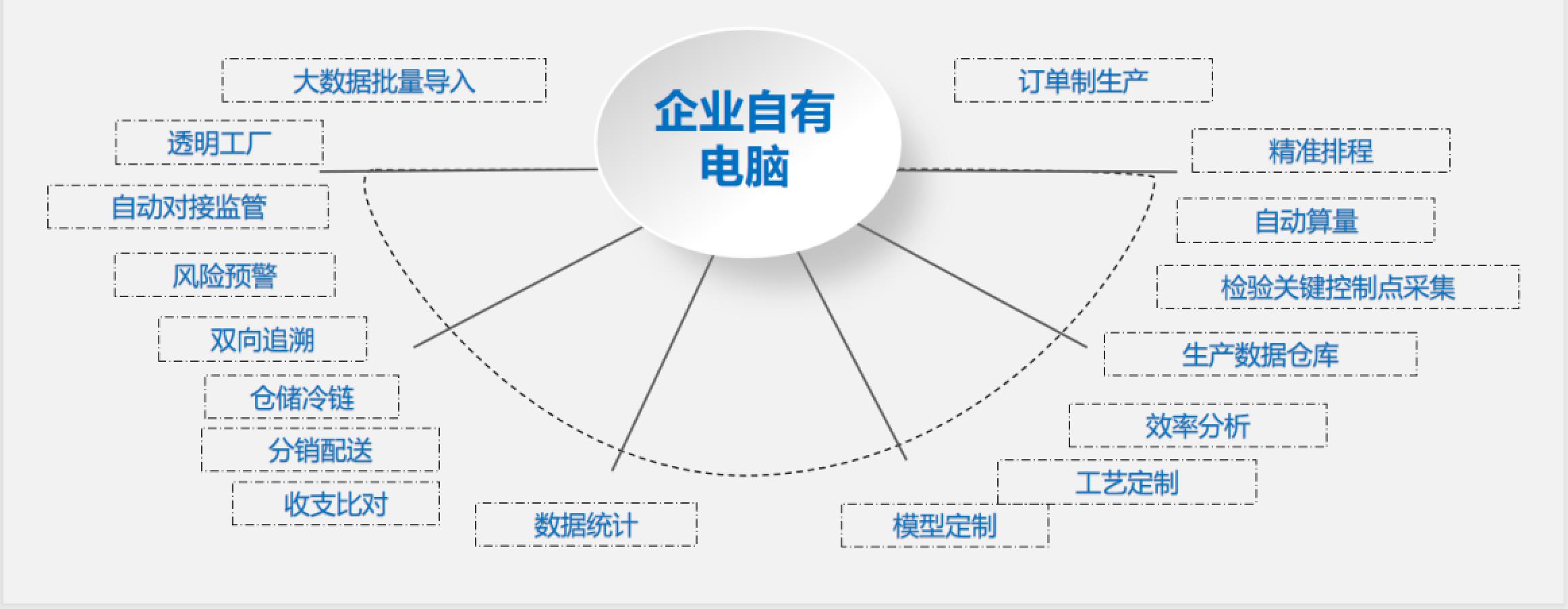 平臺構建在不需企業(yè)額外采購任何硬件的頂級安全的云計算平臺上,涵蓋訂單制生產(chǎn),精準排程,自動算量、數(shù)據(jù)統(tǒng)計模型定制等數(shù)十個為中小食品生產(chǎn)企業(yè)量身定做的生產(chǎn)信息傳輸平臺,滿足企業(yè)一個平臺處理多項業(yè)務的目標。